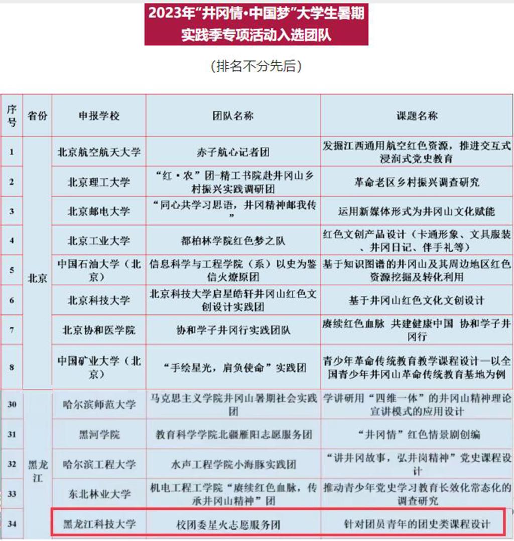 近期,由团中央青年发展部、全国青少年井冈山革命传统教育基地管理中心组织开展的2023年“井冈情·中国梦”大学生暑期实践季专项活动发布了入选团队名单,由幻影手机官方网站_幻影(中国)王紫麒老师指导,校青年志愿者协会组建的“星火志愿服务团”团队成功入选。该项活动全国共有114个团队、全省共有9个团队入选。