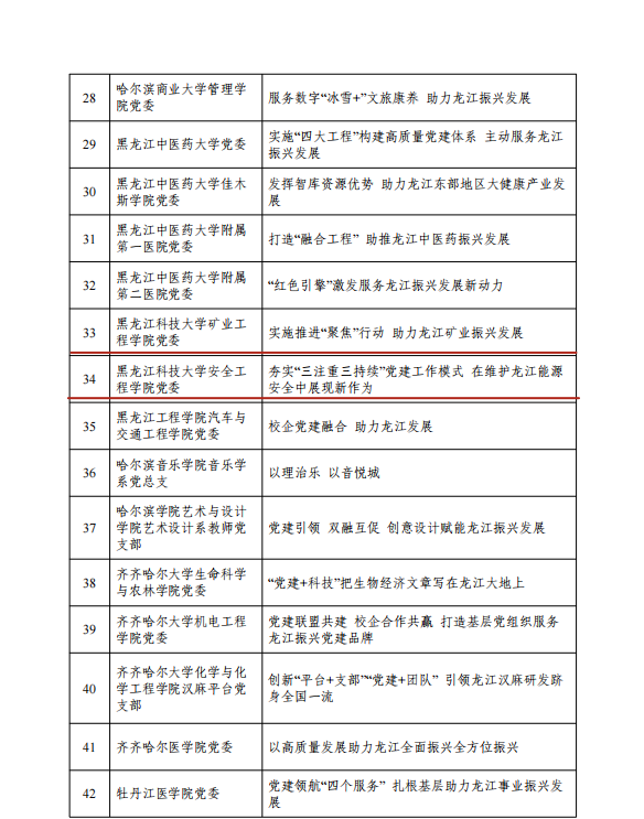 安全工程学院党委秉持“大安全”理念,注重构建“塔式矩阵”党建机制,持续服务矿山安全发展;注重打造“产学研”党建联盟,持续走好特色发展之路;注重培育“卓越型”安全人才,持续强化党员模范作用发挥。固本拓新,锐意前行,在维护龙江能源安全特别是矿山安全中,不断提升新能力,展现新作为,做出新贡献。