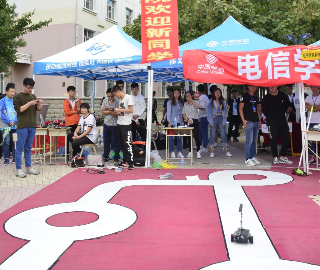 电信学院迎新现场出现了大学生自主研发的游戏和机器人