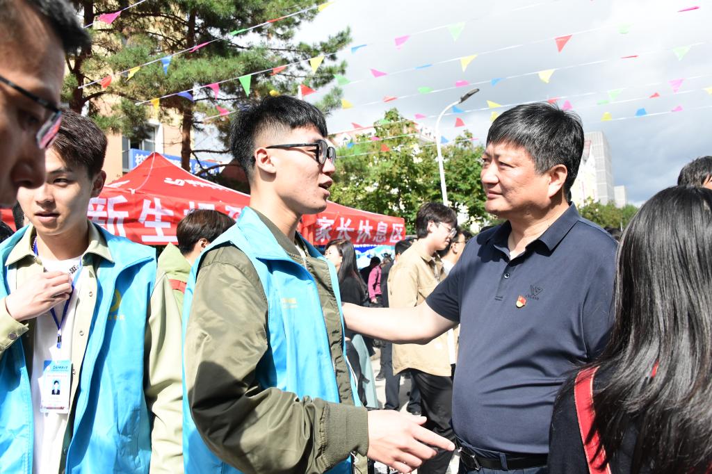 上午,校党委书记周宏力平、校长孟上九、党委副书记桑玉军、副校长张国华、副校长张宝成来到文化广场的报到现场,全流程指导迎新工作,与报到新生及家长亲切交流、合影留念,慰问工作人员和志愿者。学校办公室、学生处、保卫处、后勤处等相关职能部门负责人陪同。