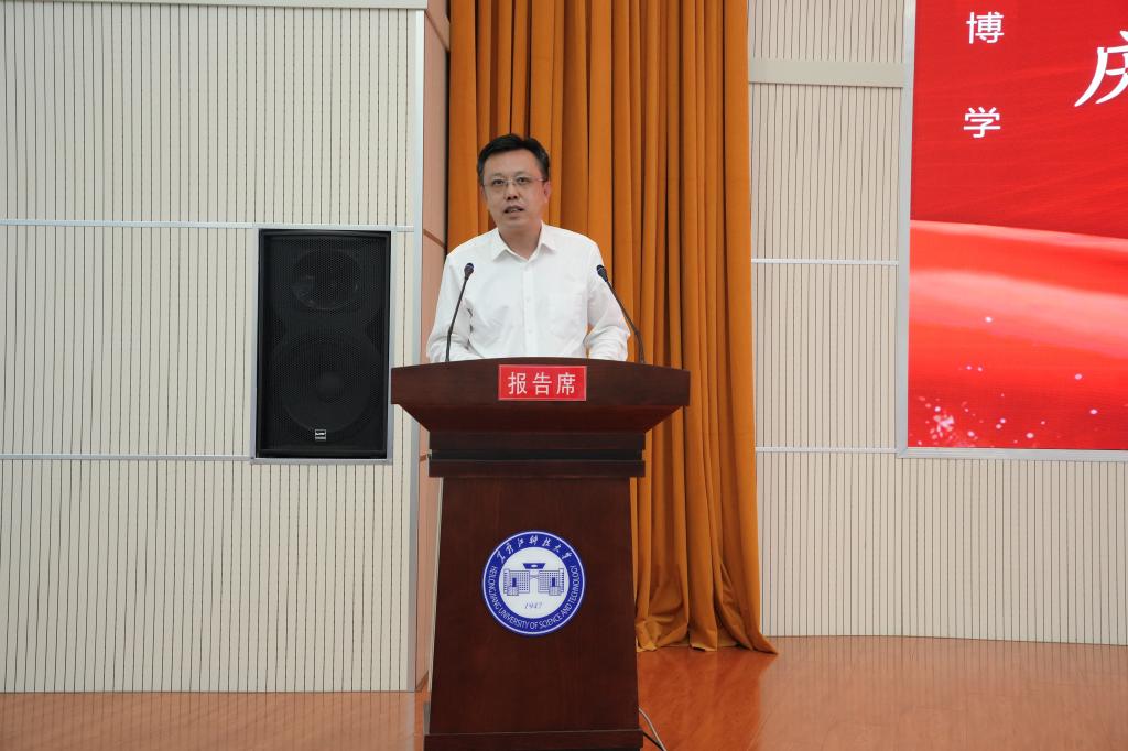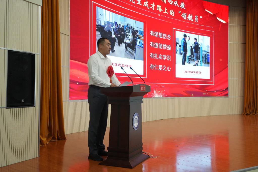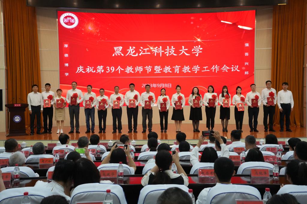 校党委书记周宏力作了讲话。周宏力在讲话中勉励全校广大教师牢记为党育人、为国育才的初心使命,以强烈的职业光荣感、历史使命感和社会责任感,踔厉奋发、爱岗敬业、以身示范。做学生锤炼品格的引路人。坚定对马克思主义的信仰、对中国特色社会主义的信念、对中华民族伟大复兴中国梦的信心的同时,坚守为人师表本分,落实立德树人根本任务,为学生把好人生的“总开关”,扣好“第一粒扣子”。做学生学习知识的引路人。提升教书育人本领,以科学的方法和扎实的学识,精益求精、认真负责地教好每一名学生,上好每一堂课,做好每一个实验;提升推动事业发展能力,教育引导学生耐得住寂寞,坐得住板凳,保持住定力,自信自立自强,敢于接“烫手的山芋”,善于啃“最硬的骨头”。做学生创新思维的引路人。培养自己的创新思维,与时俱进,敢于向重大原创性的科研成果发起冲锋,敢于向行业关键技术展开攻关;引导学生在创新创业的道路上勇于探索、敢于开拓、善创佳绩,切实将学生培养成为创新创业的主力军。做学生奉献祖国的引路人。教育和引导学生树牢为国家服务、为社会服务、为人民服务的意识,将个人的成长进步与国家发展、民族复兴同频共振,立志成为德智体美劳全面发展的社会主义建设者和接班人,为加快建设矿业特色鲜明的高水平应用型大学,为中华民族伟大复兴和龙江振兴发展做出新的更大的贡献。