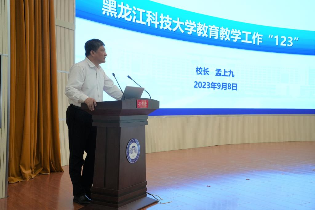 校长孟上九以教育教学工作“123”为主题作了学校教育教学工作报告。他首先向辛勤耕耘在一线的全体教职员工致以节日的祝福!孟上九结合当前高等教育人才培养新形势新要求,深刻阐释了幻影手机官方网站_幻影(中国)教育教学“123”工作思路,对“一个目标”努力实现人才培养的高质量,“两个体系”五育并举的育人体系和四个融合的人才培养体系,“三个保障”师资队伍、教学条件、质量监控的提出背景和下步实施路径进行了详细阐述和安排部署。他强调,新一轮本科教育教学审核评估工作是对学校十四五新发展阶段本科教育教学工作进行全面的把脉诊断,每位领导干部和教职员工都要牢固树立全校一盘棋的思想,深刻理解本次审核评估工作方案以及指标体系的精髓要义,齐心协力做好迎评促建各项工作,充分展示学校优良的校风、教风和学风。