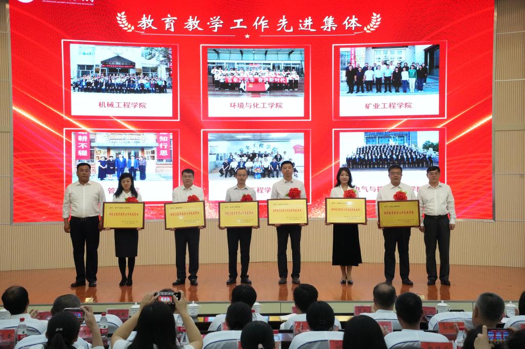 教育教学先进集体机械工程学院院长唐庆菊;“三育人”先进集体校团委书记宋玉彬;优秀研究生导师安全工程学院刘传海;教育教学先进个人经济学院王一雯;“执教三十年纪念奖”获奖者环境与化工学院院长熊楚安;新入职教师代表电气与控制工程学院李林骜等六名同志分别进行了经验交流。