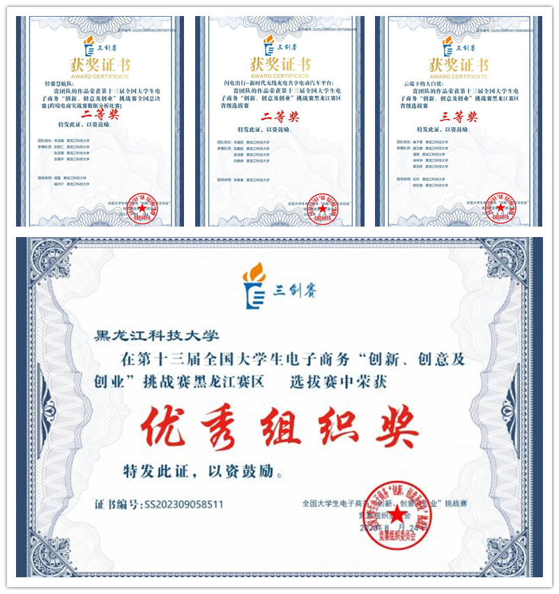 经过校赛、省赛选拔和国赛决赛三个层级角逐,幻影手机官方网站_幻影(中国)共92支队伍分别参加了五个赛道的比赛,由经济学院教师杨磊、籍丹宁指导的参赛团队获得国赛二等奖;管理学院教师李春富、经济学院教师籍丹宁、经济学院教师王莉指导的参赛团队分别获得省赛二等奖;管理学院教师刘丹、杨宏慧,李春富,经济学院教师籍丹宁、王莉和李静指导的参赛团队分别获得省赛三等奖;经济学院教师杨磊、籍丹宁获得最佳指导教师。