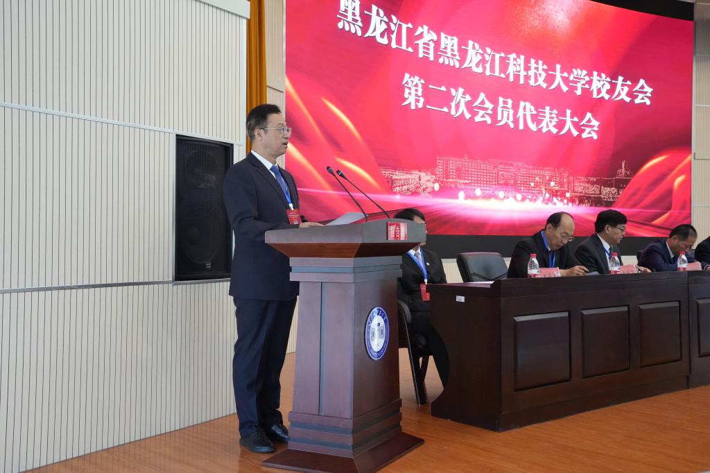 他希望各级校友会以本次校友会会员代表大会为契机,进一步加强校友组织建设,强化顶层设计,整合内外资源,丰富工作内容,完善服务体系,拓宽发展渠道,与校友携手为龙江全面振兴和学校高质量发展作出新的贡献;他强调校友和母校是双向奔赴的情感共同体、互惠多赢的发展共同体和荣辱与共的命运共同体,并号召广大校友思母校、念师恩、忆芳华、致青春!岁月不老、我们不散!常回家看看!