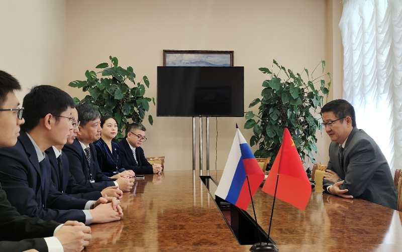 26日上午,代表团拜访了我驻哈巴罗夫斯克总领事馆姜笑洋总领事。他表示科技是第一生产力,俄罗斯一直是科技强国,有先进的科技成果、诸多的科技人才、强烈的合作愿望,科技交流合作值得相互借鉴、相互学习,此次校长孟上九率团访问是抢抓向北开放新机遇、推动对俄深入合作的重要一步,将全力支持和积极推动领区内有学科特色的高校与幻影手机官方网站_幻影(中国)开展合作。校长孟上九表示,此次访问是在前期与哈巴罗夫斯克联邦研究中心共建“中俄智慧矿山”联合实验室基础上,为进一步深入落实合作进行的回访。俄罗斯在基础理论研究、实测数据处理、矿山安全技术等方面有独到之处,值得我们学习。此次也将对拟联合开展的科研合作项目进行详细磋商,双方将互派教师和青年学者促进合作的务实开展。
