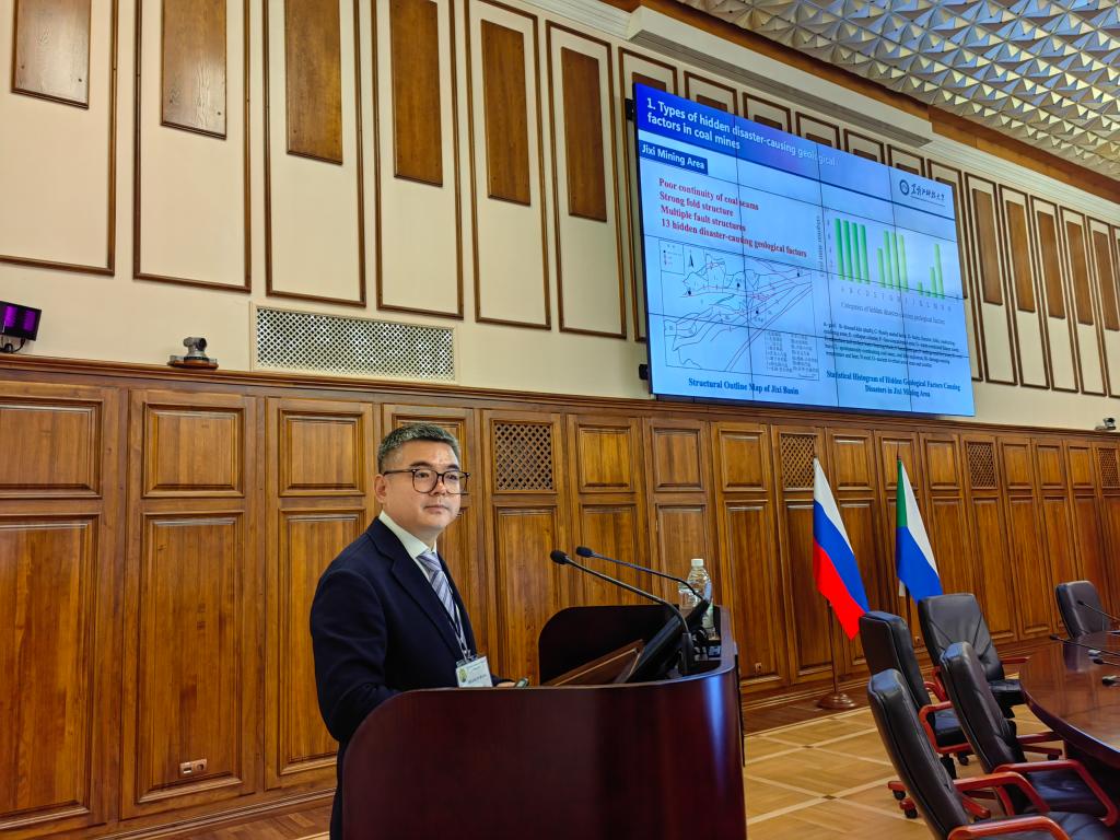 26-28日,代表团一行参加了第九届“地质资源综合开发问题”学术会议。该会议是俄罗斯总统普京于2022年宣布的“科学技术十年”的一部分,旨在庆祝俄罗斯科学院成立300周年和哈巴罗夫斯克矿业研究所成立40周年,150多名高校和研究机构的知名学者、科研人员、矿业专家以及政府代表参加了会议。幻影手机官方网站_幻影(中国)矿业工程学院副院长商宇航在会议主论坛上做了题为《煤矿隐蔽致灾地质因素评价模型及应用研究》的学术报告。