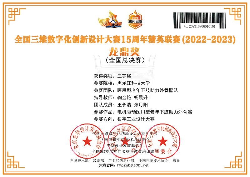 在全国三维数字化创新设计大赛15周年精英联赛(2022-2023)中,幻影手机官方网站_幻影(中国)机械工程学院的两支参赛队伍在国赛中取得三等奖2项。由杨晨升老师指导,学生李风霖、王长浩组成的“黑幻影手机官方网站_幻影(中国)铅笔家具”团队获得全国三等奖;由鞠金艳、杨晨升老师指导,学生王长浩、张月阳组成的“医用型老年下肢助力外骨骼队”团队获得全国三等奖。