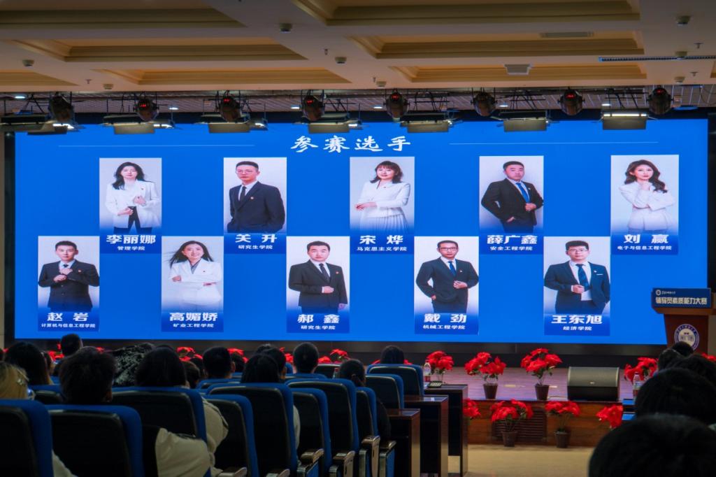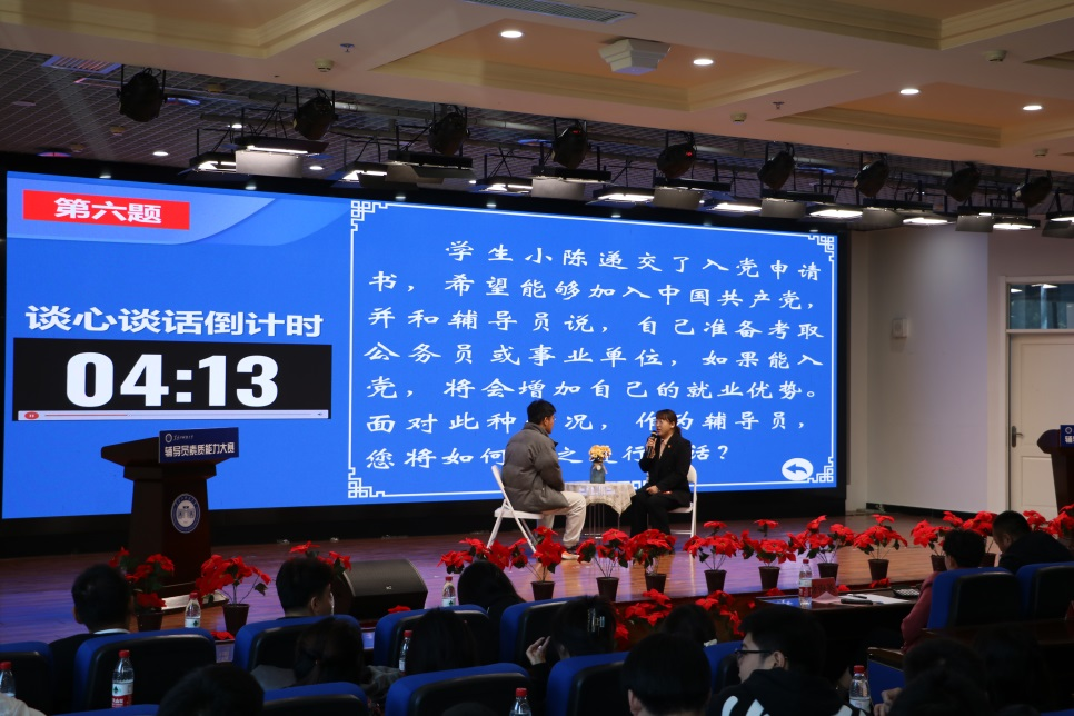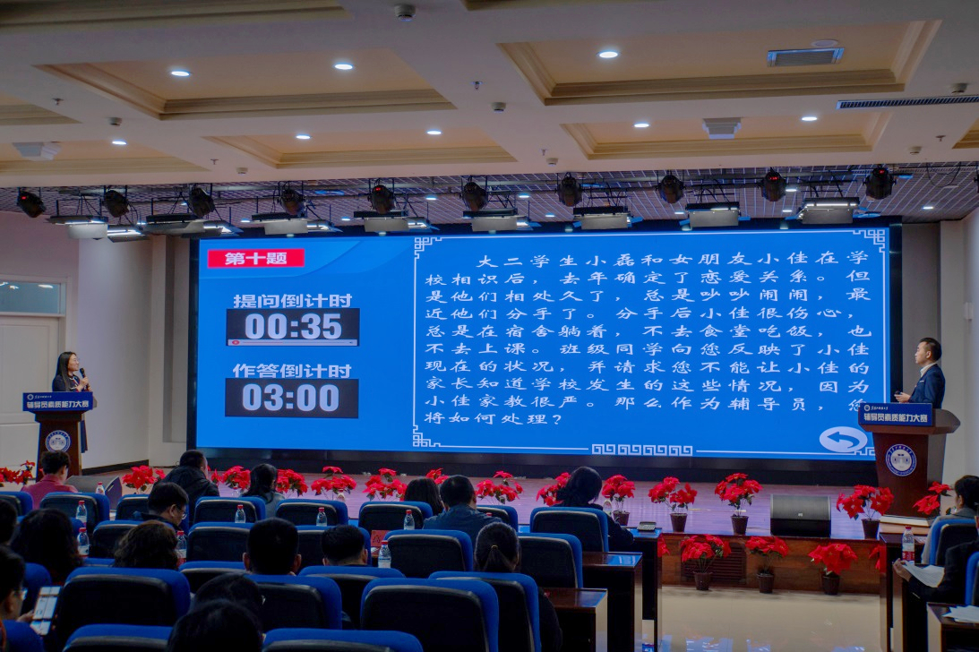 学校党委高度重视辅导员队伍建设,决定举办辅导员素质能力大赛,切实把大赛打造成提高辅导员素质能力的精准赋能平台,达到以赛代练、以赛代训、以赛促学的目的。大赛分初赛、复赛和决赛三个赛程,初赛采用基础知识测试的形式,学校全体辅导员参赛,初赛成绩前30%的选手进入复赛。复赛考核内容为基础知识测试和学生情况熟知,复赛成绩前十名选手进入决赛。