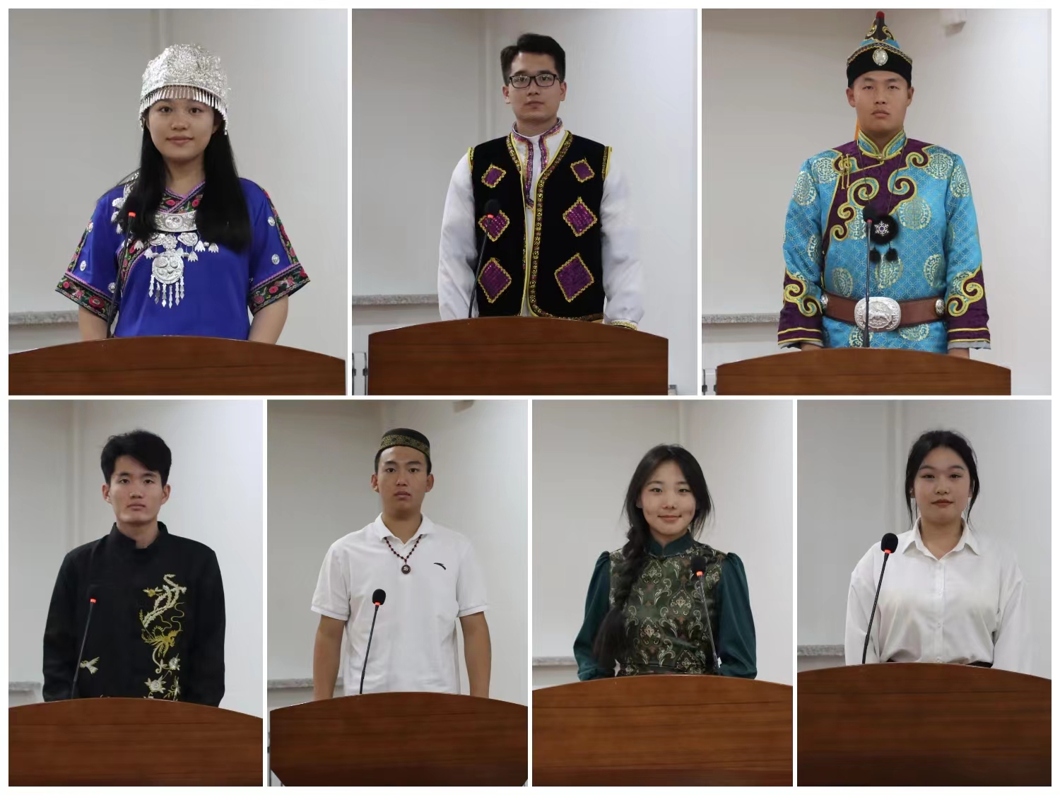 “青马班”和团校学员代表分别作心得交流,少数民族学生代表分别介绍蒙古族、回族、鄂温克族、壮族、藏族的地域特色、传统节日、民族服饰,现场展示了民族舞蹈,展现了中华文化的独特魅力,激发出同心筑梦的情感共鸣。