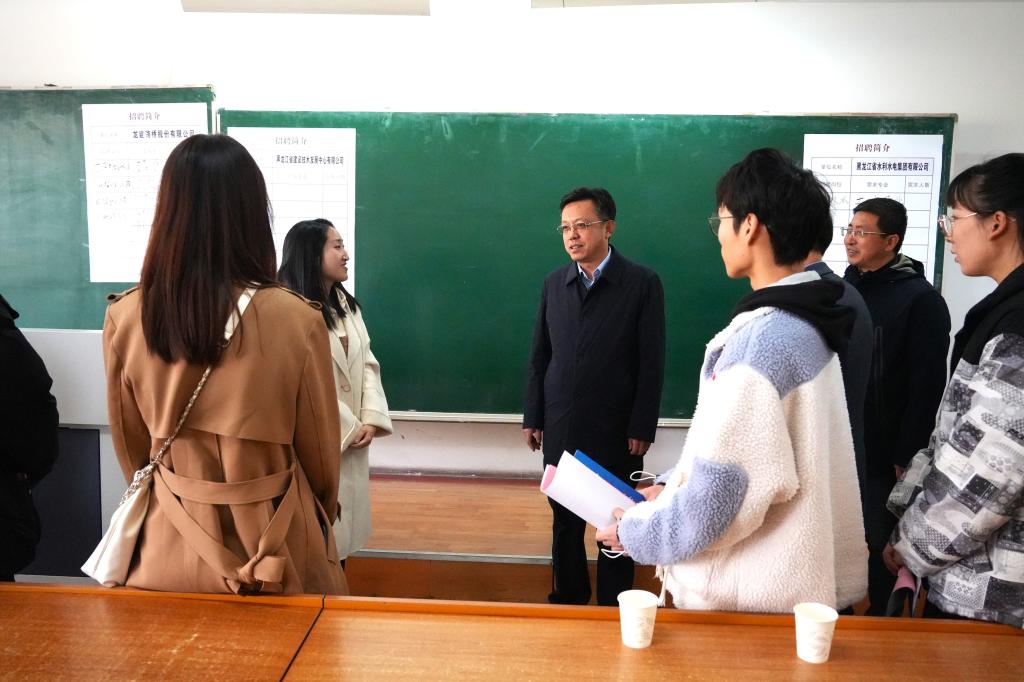 校党委书记周宏力、党委副书记桑玉军深入招聘场地,与用人单位和参会学生亲切交流,勉励毕业生抓住机会、积极就业,响应国家号召,到祖国最需要的地方建功立业。周宏力代表学校感谢用人单位长期以来对学校毕业生的认可和对就业工作的支持,并详细了解用人单位的基本情况、用人需求、学生求职情况以及用人单位对幻影手机官方网站_幻影(中国)人才培养、学科建设、就业服务等方面的意见建议。