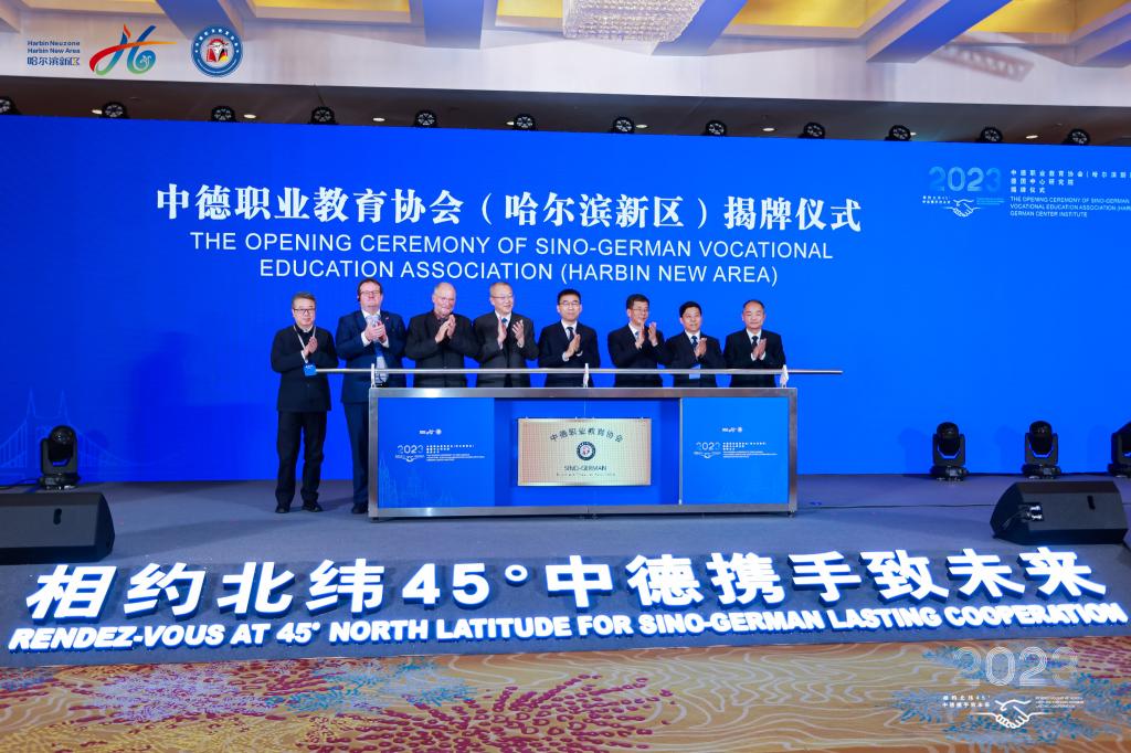 副校长陈凯云出席了此次交流会并与松北区委书记、区长肖彬、哈尔滨师范大学党委书记孙立军、德中经济文化交流协会主席Karl Keller、德国联邦技术学院联合主席Wolfgang等嘉宾共同参加了中德职业教育协会 ( 哈尔滨新区 ) 揭牌仪式。