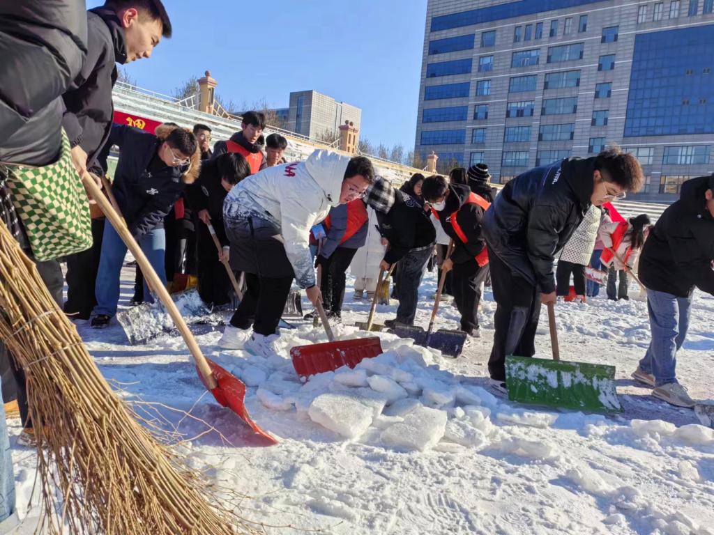 活动现场,校院两级团学组织骨干打着旗帜、喊着口号、精神饱满、斗志昂扬,不断挥舞着铁锹和扫帚,你扫我铲,成为皑皑白雪中一道靓丽的风景。学生会组织负责人在活动现场不时动员全体骨干要切实将服务同学,为同学做实事作为开展学生会工作,赢得学生认可和信赖的重要抓手和工作主线;大学生仪仗队、青年传媒中心、学生社团等各级学生组织团支部书记表示,将功能性团支部的主题团日开在服务同学的现场是一次新的体验,为下一步功能性团支部建设积累了宝贵经验。
