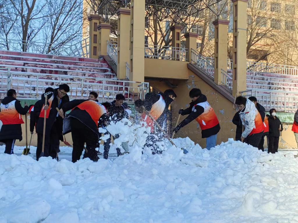 11月19日下午,学校运动场上红旗招展、人头攒动,情绪热烈、斗志昂扬,呈现出一派气势高涨又秩序井然的热闹景象。了解得知,这是校院两级团学组织开展的“清雪除冰•服务同学”专项行动的活动现场。入冬以来,连续两次降雪为我们美丽的城市披上了银装素裹,分外妖娆。冰雪覆盖为广大同学带来欢乐、激情与活力的同时,也对大家的户外体育活动造成了不小的困扰,能有一条“暖心跑道”便成了广大同学的心愿。得知同学们的心愿后,为同学们打造一条“暖心跑道”就成了校学生会一周以来一直心心念念的牵挂。于是,一次“清雪除冰•服务同学”专项行动计划就在校院两级团学组织中开始了精心谋划、设计、组织和实施,开始时的介绍就是该专项行动的场景。