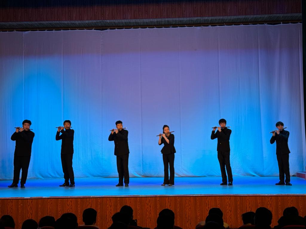 一曲气势磅礴的器乐合奏《战台风》拉开了演出的序幕;歌曲《有生之恋》《春风十万里》,温柔的歌声背后蕴藏着深厚的情感,优美雅正的旋律,如春风化雨般抚慰心灵;群口快板《绕口令》,幽默与智慧的碰撞让大家笑声不断;竹笛齐奏《扬鞭催马运粮忙》,乐曲热情明快,马蹄击节,车轮吟唱,快乐的农夫扬鞭催马,把丰收的喜悦铺撒在运粮的小道上;舞蹈《生的希望》,展现了人民群众、党和政府团结一心奋力抗灾的中国精神,书写了人民至上、生命至上的时代答卷,彰显了中华民族的力量与担当;唢呐齐奏《打枣》、器乐合奏《追风的云青马》、俄罗斯民间舞蹈《卡林卡》等精彩曲目逐一上演,节奏律动活泼,音声相和,踏乐而来。在观众的热烈掌声中,演出落下帷幕。