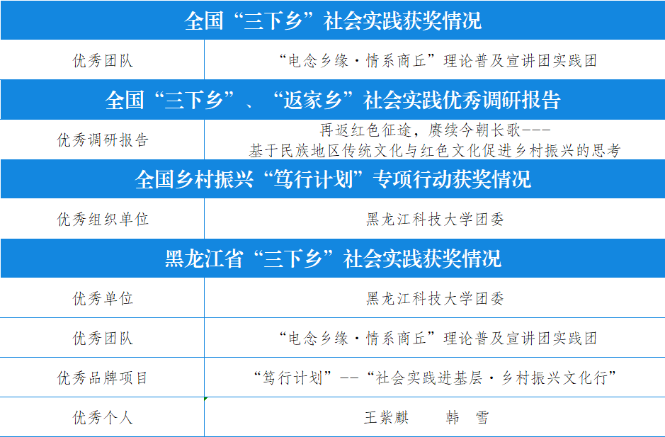 省级奖项遍地开花。校团委获评全省“优秀单位”;电气学院团委“电念乡缘·情系商丘”实践团被评为全省“优秀团队”;管理学院团委团委书记王紫麒、人文学院团委书记韩雪被评为全省“优秀个人”;笃行计划——社会实践进基层·乡村振兴文化行”项目获评“优秀品牌项目”。