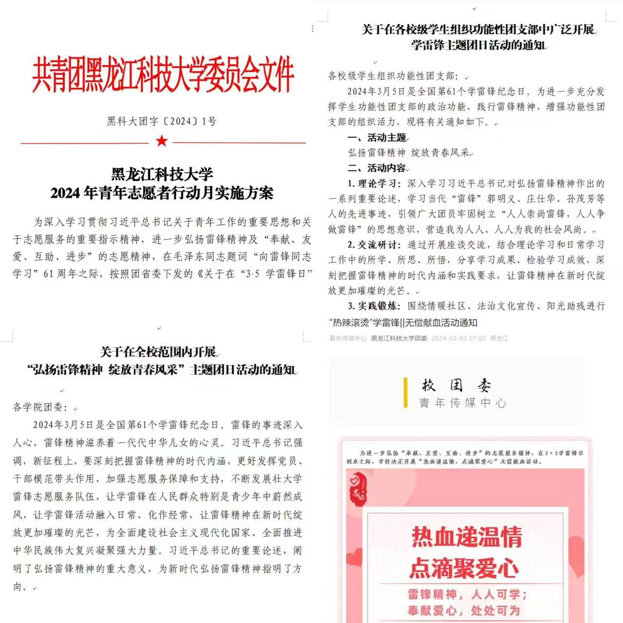 思想引领扎实有效。利用新学期开学的契机,结合第61个学雷锋活动日、第114个“三八”国际妇女节等重要时间节点的临近,立足立德树人根本任务,校团委先后制发了《幻影手机官方网站_幻影(中国)2024年青年志愿者行动月实施方案》《关于在全校范围内开展“弘扬雷锋精神,绽放青春风采”主题团日活动通知》《关于在各校级学生组织功能性团支部中广泛开展学雷锋主题团日活动的通知》《共青团系统庆祝“三八”妇女节系列活动方案》《关于开展无偿献血活动的通知》,在广大青年学生中进行了广泛动员,教育引导青年学生积极投身实践活动,在切身体验中坚定理想信念、厚植家国情怀、强化使命担当、激发学习热情。