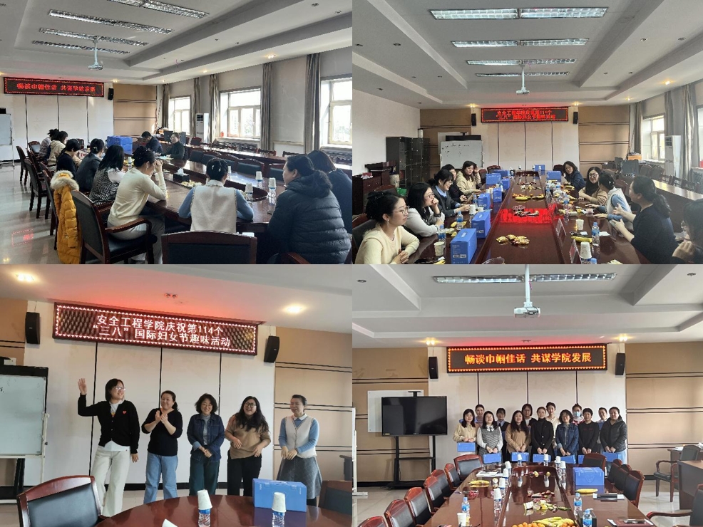 安全工程学院工会开展了庆祝第114个“三八”国际劳动妇女节座谈会,并组织开展了趣味活动。座谈会以“畅谈巾帼佳话,共谋学院发展”为主题,分享了工作经验和生活感悟,并对未来教育事业和学院发展发表了自己的看法和建议。学院党委书记王娟代表学院向全体女教职工表达了节日问候和美好祝愿,对女教职工在学院发展中作出的贡献表示感谢。随后的趣味活动使全体女教职工沉浸在“热辣滚烫”的欢声笑语中,丰富了女教职工的业余文化生活。