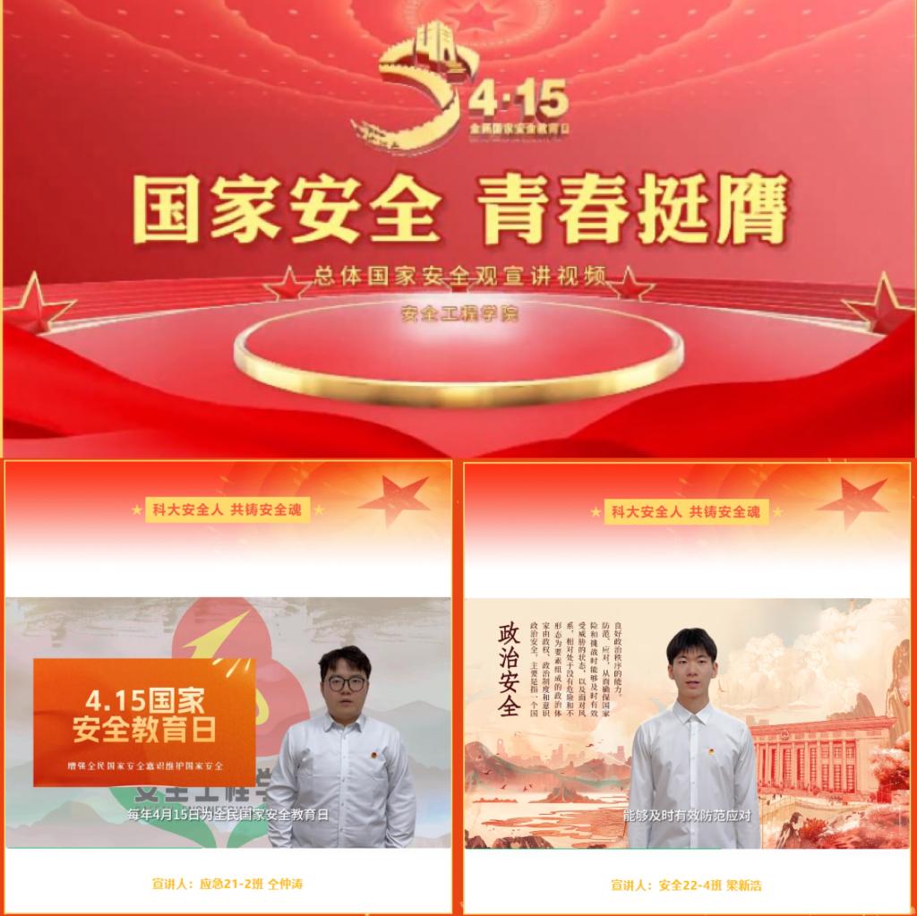 全方位实施理论宣讲。矿业学院团委、环化学院团委、电气学院团委、建工学院团委、经济学院团委、马克思学院团委深入贯彻落实党的二十大关于维护国家安全的总体部署和习近平总书记关于总体国家安全观的重要论述,围绕“习近平总书记论坚持总体国家安全观”“完成23条立法是履行维护国家安全宪制责任的生动实践”等内容,以理论学习的形式开展了主题团日活动;安全学院团委、电信学院团委、机械学院团委、管理学院团委分别围绕“总体国家安全观创新引领10周年”、“国家安全那些事儿——增强国家安全意识,共筑国家安全防线”等相关内容开展了专题知识讲座、组织团学骨干代表录制了系列宣讲视频,讲好新时代中国青年捍卫国家安全、维护社会安定、保障人民安宁的青春奋斗故事,激发使命担当,引导团员青年将国家安全意识转化为自觉行动,强化守护国家安全、共筑青春防线的时代责任。