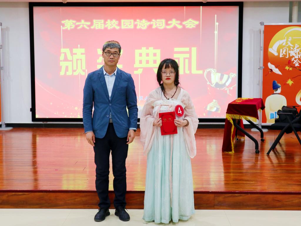 比赛过程中,还设置了古风歌曲演唱和观众互动环节。音乐爱好者协会江美龄演唱的歌曲《春语》完美地展现了古典诗词与现代音乐结合的独特韵味;互动环节,现场观众争先恐后地回答问题,凭实力获得了精美的纪念品。这些环节为大赛增添了色彩,使观众领略了不同的传统文化魅力,更激发了现场同学们对中华诗词的热爱之情。
