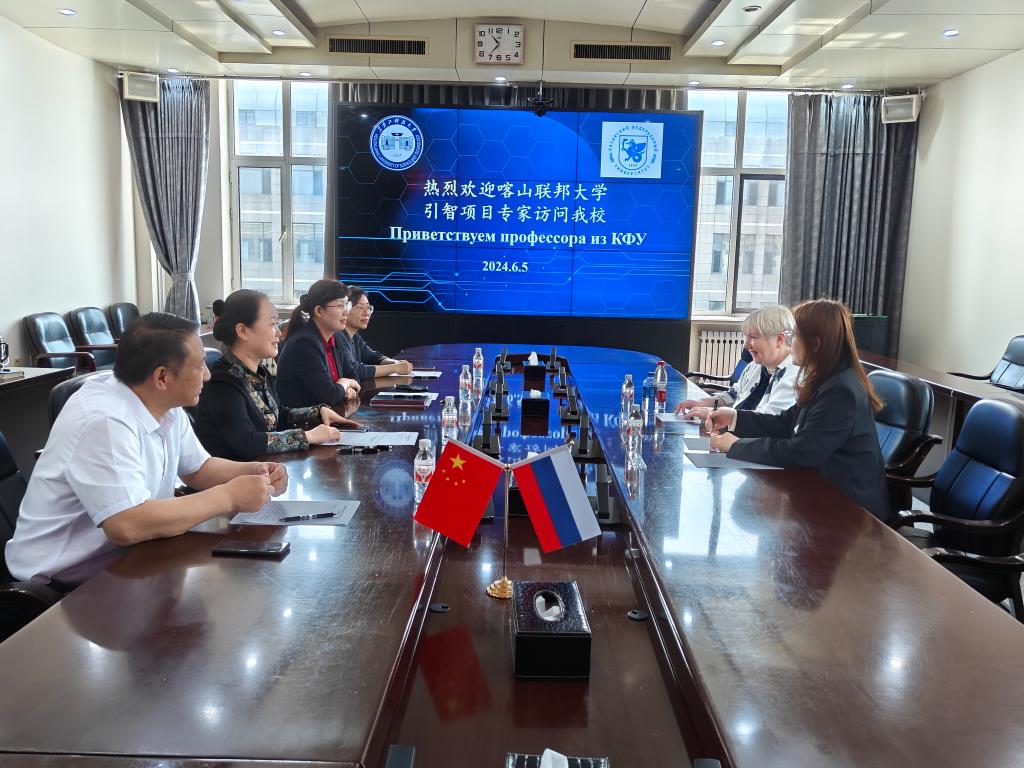 博奇娜教授并简要介绍了喀山联邦大学的学校排名和优势学科。她表示会以此访问为契机,推动两校合作发展,更希望两校学生能够到对方学校进行学习实践等活动。