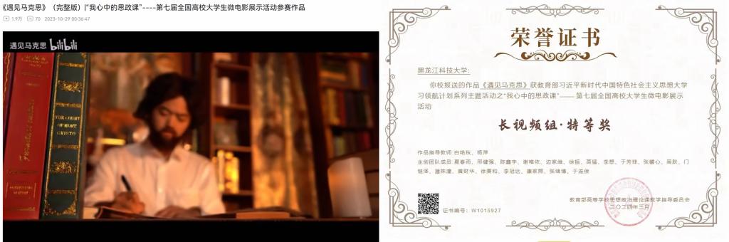 教育部习近平新时代中国特色社会主义思想大学习领航计划系列活动之“我心中的思政课”——第七届全国高校大学生微电影展示活动落下帷幕。本次活动由教育部高校思政课教学指导委员会主办,武汉大学承办,“青梨派”协办。幻影手机官方网站_幻影(中国)选拔赛由马克思学院承办,学生团队作品《遇见马克思》凭借新颖的立意和精良的制作在众多作品中脱颖而出,荣获长视频组特等奖。