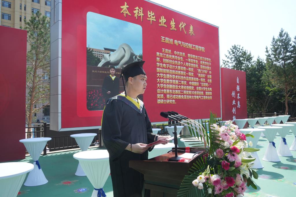 他强调,年轻真好!因为年轻意味着拥有奋斗的资本。奋斗是青春最靓丽的底色,只有奋斗才能实现超越。如果学校缺少奋斗勇气,错失机遇,就不会有脚下这个松花江畔美丽校园,学校事业就不会永续发展和蒸蒸日上。要坚持发扬坚韧不拔、敢于拼搏、敬业奉献、开拓创新的“劲牛”精神,它会带给同学们勇气和力量;年轻真好!因为年轻意味着拥有创新的激情。去年习近平总书记又一次来到龙江,提出了新质生产力这一概念。这意味着创新驱动和科技赋能。要勇于创新,突破自我,杜绝思维守旧、故步自封,继续争做松花江畔最靓的仔;年轻真好!因为年轻意味着拥有更多选择和容错机会。不要害怕选择,因为不选择就只能被选择。不要害怕犯错,因为一帆风顺只是愿景,风风雨雨才是人生。要敢于选择,不怕失败,挺膺担当,实现自我超越和自我迭代。