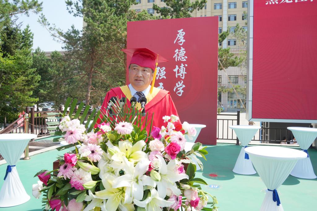 典礼上,校长孟上九作了精彩讲话。他代表全校师生员工向圆满完成学业的毕业生致以最热烈的祝贺。他寄语毕业生,生逢盛世本应韶华不负,强国有我更要挺膺担当!希望同学们勇于奋斗、不断创新、敢于选择。