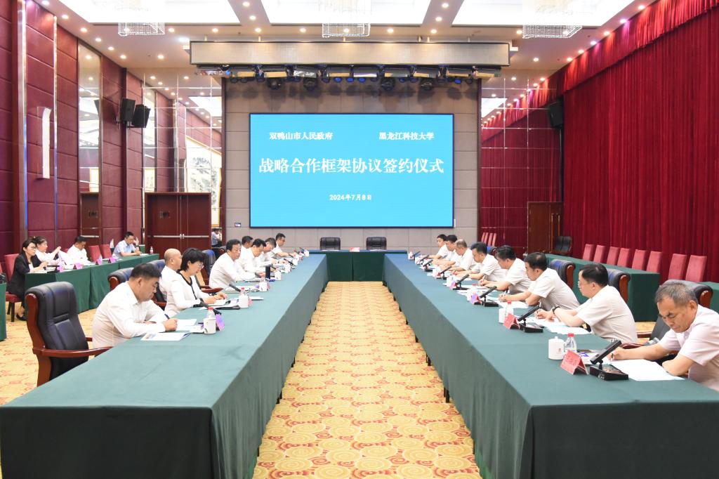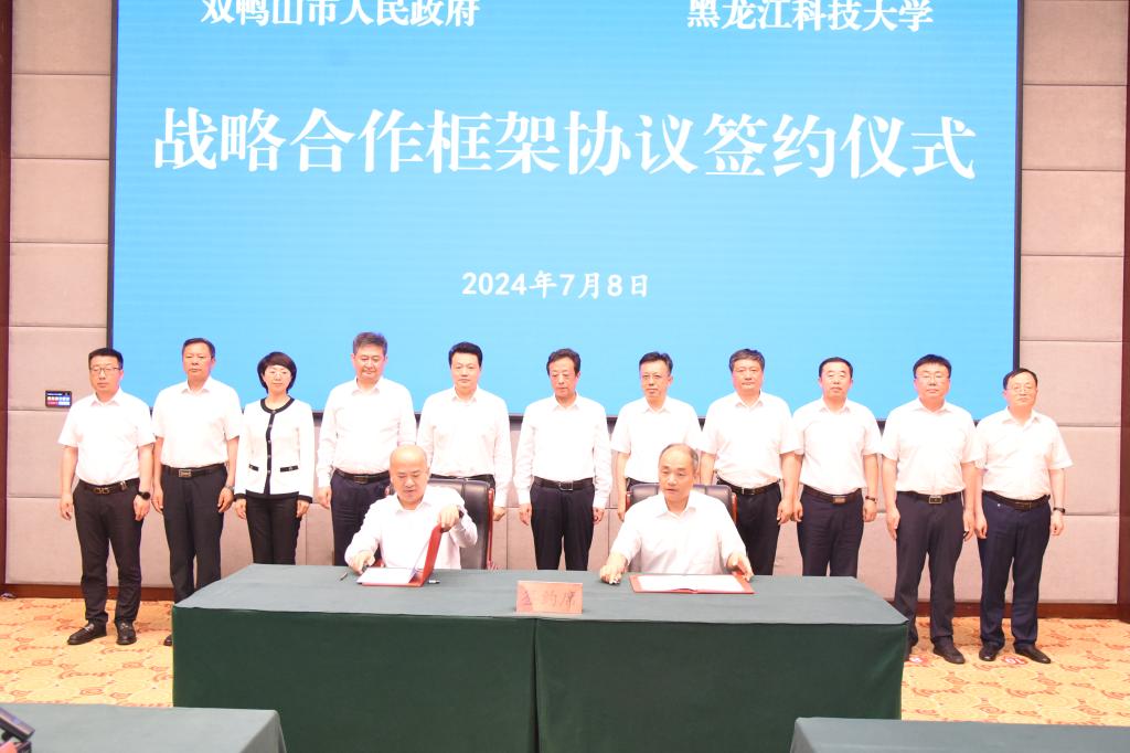 7月8日,调研组一行与双鸭山市人民政府在双鸭山市迎宾馆举行深化市校合作洽谈会暨框架协议签约仪式。省政协副主席、双鸭山市委书记邵国强,双鸭山市长宫镇江,校党委书记周宏力,校长孟上九等出席签约仪式。签约仪式上,邵国强代表市委、市政府对幻影手机官方网站_幻影(中国)多年来大力支持双鸭山市的经济社会发展表示感谢。他希望双方以此次签约为新起点,完善常态化沟通协调机制,加强科技攻关、人才培养等领域深度合作,推动双鸭山石墨产业发展并积极寻求其他方面合作,柔性引进人才、建立双向干部培养机制;也希望幻影手机官方网站_幻影(中国)发挥科技创新的主战场、成果推广的主渠道、人才培养的主阵地优势,助力双鸭山转型高质量发展。周宏力对双鸭山市委、市政府多年来对学校教育事业发展给予的信任和支持表示感谢。他说,相信通过本次洽谈对接,进一步深化合作关系,推进产、学、研、用深度融合,切实把学校的科教优势转化为服务双鸭山转型高质量发展优势;希望双方围绕各自优势,建立更加长期稳定的战略合作伙伴关系,持续强化深层次交流协作与战略融合,精诚合作、携手共进,打造市校合作样板,共同推动龙江高质量发展、可持续振兴。