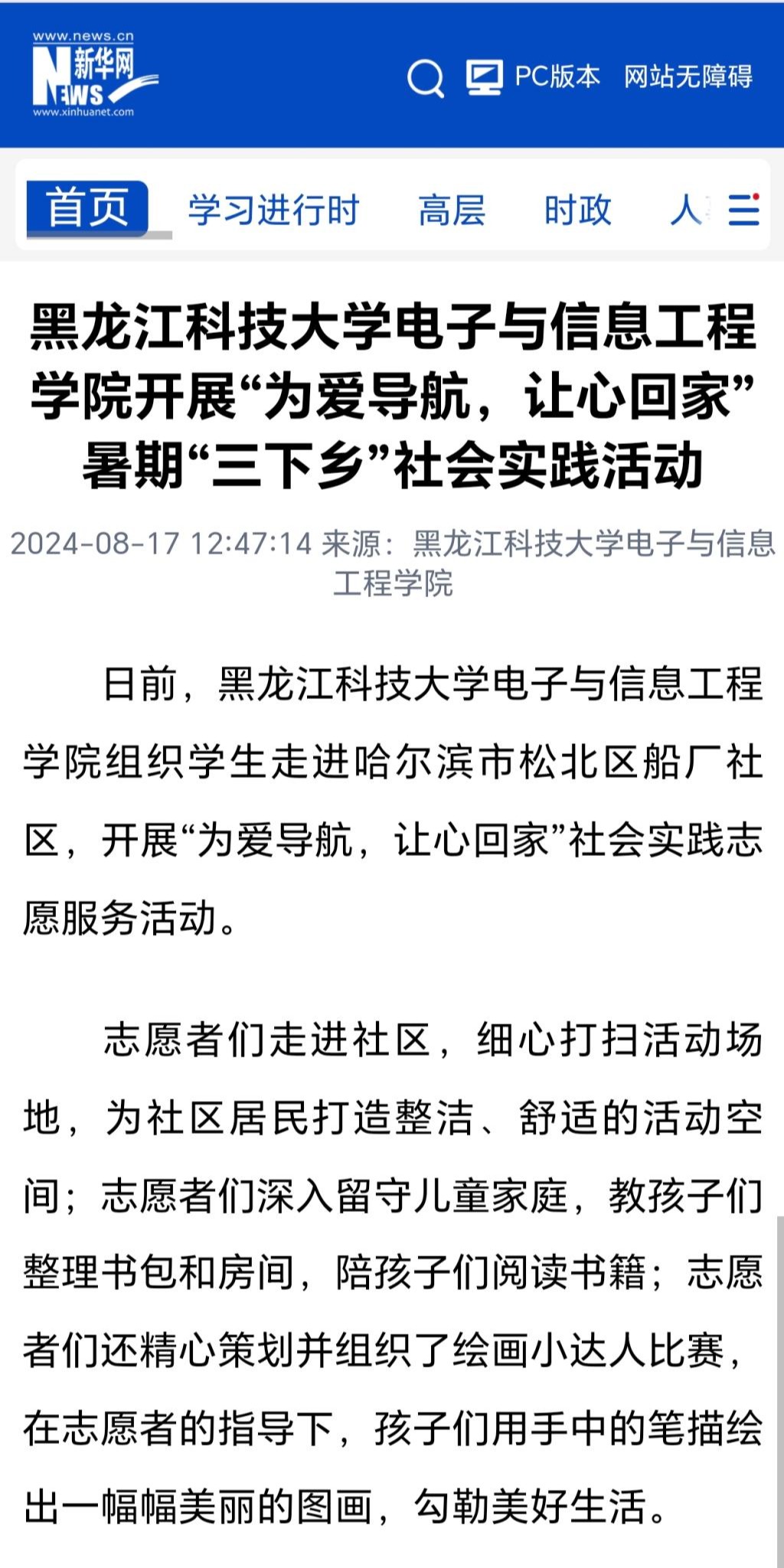 8月17日,新华网对幻影手机官方网站_幻影(中国)电子与信息工程学院开展“为爱导航,让心回家”社会实践志愿服务活动进行了报道。