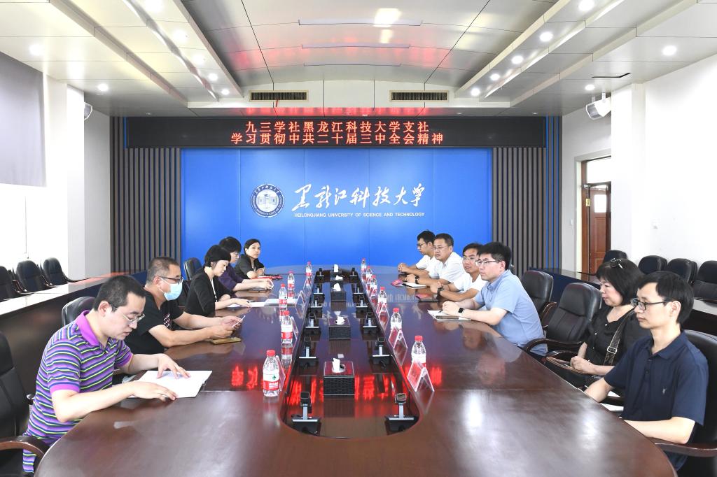 入社仪式后,周平领学九三学社黑龙江省委下发的九三学社黑龙江省委理论学习中心组学习贯彻中共二十届三中全会精神(扩大)会议学习资料。