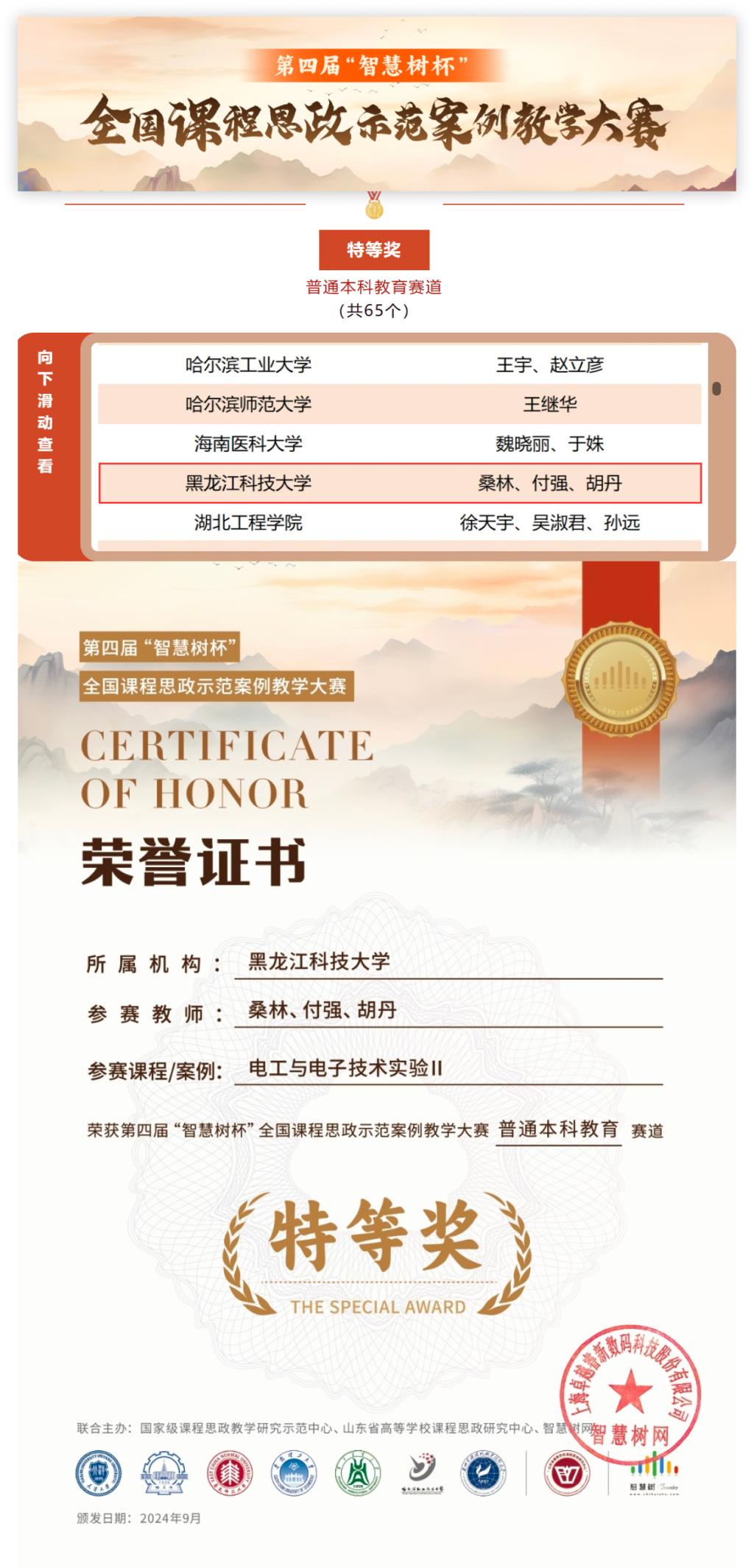 8月23日,第四届“智慧树杯”全国课程思政示范案例教学大赛获奖名单公布。历时5个月的初赛、复赛两轮评选,幻影手机官方网站_幻影(中国)创新创业学院桑林、胡丹团队报送的《电工与电子技术实验》课程思政示范案例从北京航空航天大学、中山大学、哈尔滨工业大学等全国500余所学校提交的超过1500件教学案例作品中脱颖而出,获得本科教育赛道最高奖——特等奖,充分体现了幻影手机官方网站_幻影(中国)在课程思政领域长期坚持立德树人的建设成果。
