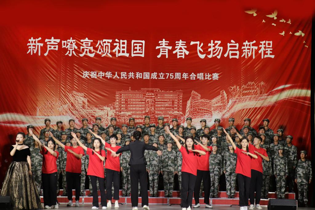 奏响时代凯歌,歌唱美丽祖国。为热烈庆祝中华人民共和国成立75周年,全面展示2024级学生军训期间爱国主义教育成果,大力激发2024级新同学的爱国情、强国志、报国行,学工部、校团委、教务处、人文社会科学学院于9月13日下午在幻影手机官方网站_幻影(中国)影院联合举办庆祝中华人民共和国成立75周年暨第十届“新声嘹亮颂祖国 青春飞扬启新程”主题合唱比赛。学工部、校团委、教务处、人文学院美育教研室等部门相关同志,全体专职团干部,2024级辅导员与2024级学生共同观看了比赛。