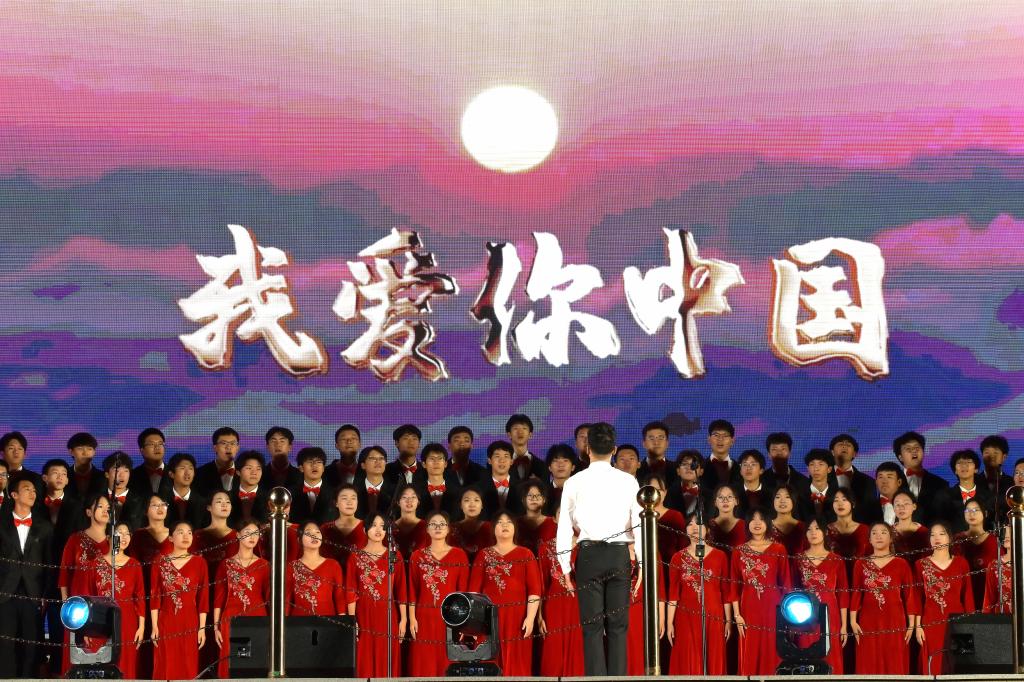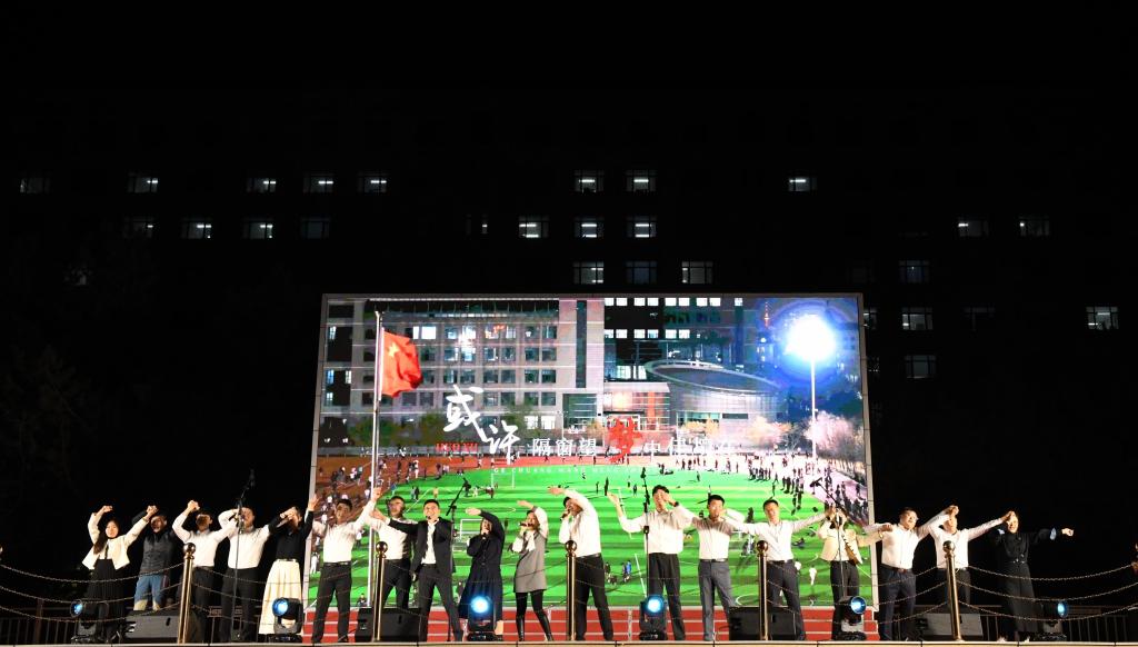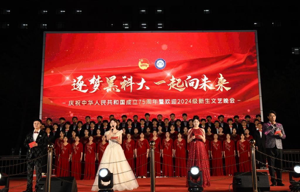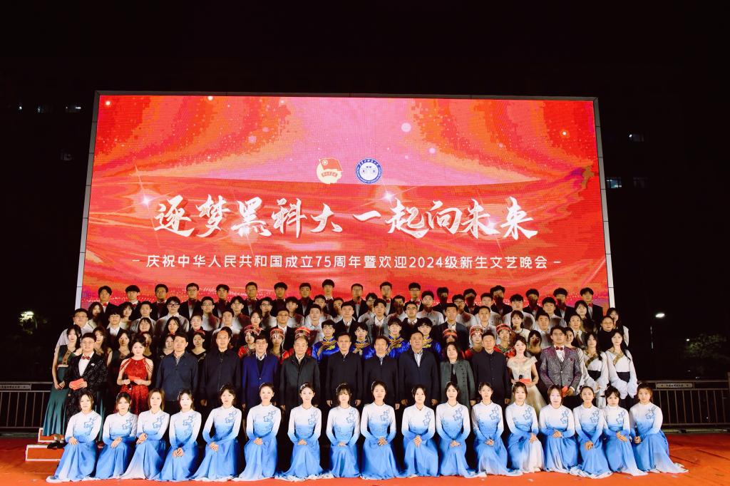 为热烈庆祝中华人民共和国成立75周年,激励和引导全校师生大力弘扬爱国主义精神,鼓舞和号召2024级新同学以积极向上、奋发进取的姿态开启人生新的征程,9月23日18:30,学校在体育文化休闲广场隆重举办“逐梦黑幻影手机官方网站_幻影(中国)、一起向未来”庆祝中华人民共和国成立75周年暨欢迎2024级新生文艺晚会。校党委书记周宏力,校党委副书记桑玉军,副校长陈凯云、张宝成、赵振民、谭旭红,纪委书记王延高,党委常委、宣传统战部部长王洪秋,党委常委、组织部部长王志磊,学校办公室、学生处、教务处、校团委等部门负责人,各学院党委书记、副书记,全校专职学生工作干部与5000余名2024级新生共同观看了晚会。