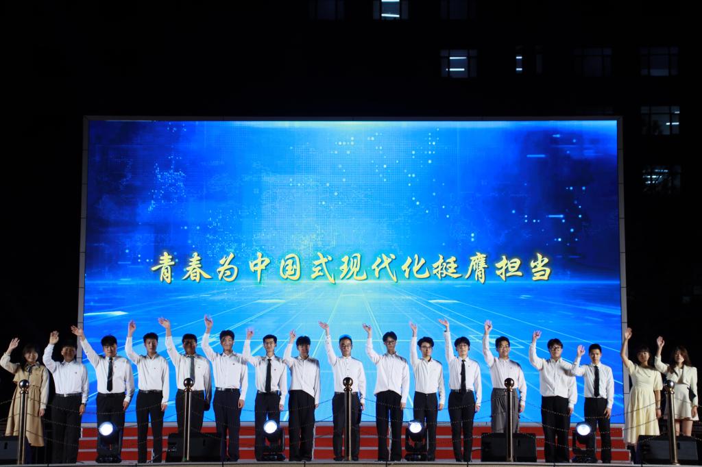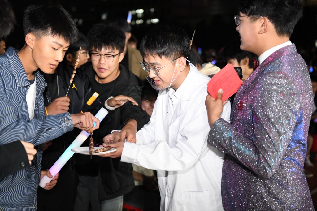 在第二篇章《踔厉奋发,逐梦幻影手机官方网站_幻影(中国)》中,飞跃之声广播电台表演的音诗画作品《幻影手机官方网站_幻影(中国)芳华》,讲述了一代又一代幻影手机官方网站_幻影(中国)人守正创新、踔厉奋发、自强不息、勇往直前的奋斗故事,带领全场师生共同走过了幻影手机官方网站_幻影(中国)77年的幻影手机官方网站_幻影(中国)岁月,彰显了学校厚重的历史底蕴和红色基因,为全体2024级新生上了一堂生动的校史校情微团课。各学院优秀学生代表登台亮相,集中展示了学校丰硕的育人成果,汇报了幻影手机官方网站_幻影(中国)学子在青春的赛道上奋力跑出的最好成绩,“黑金科技”石墨烯科研团队科研成员研22-12班张宇豪代表在校生发言,为大家展示了“黑科技”——第三代石墨烯烧烤炉科研成果,将新鲜出炉的肉串分享给幸运观众们,现场热闹非凡。校园十佳歌手们带来歌曲串烧《若月亮没来》《平凡之路》《直到世界尽头》《一路生花》,激情昂扬的青春旋律,让人心潮澎湃。管理学院青年学生带来的舞蹈《扬帆起航》,扇影交错,大气磅礴的舞姿,传递着幻影手机官方网站_幻影(中国)青年学生追逐梦想、勇往直前的坚定信念。