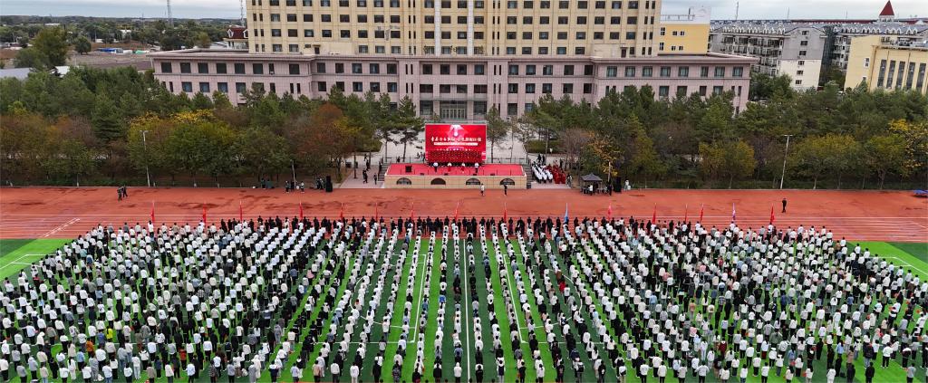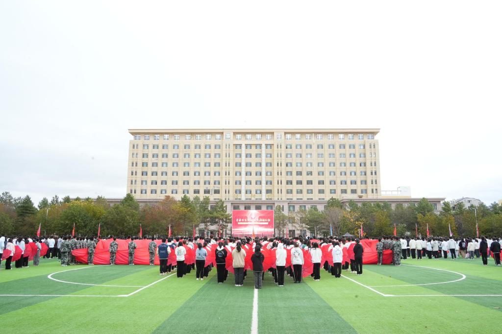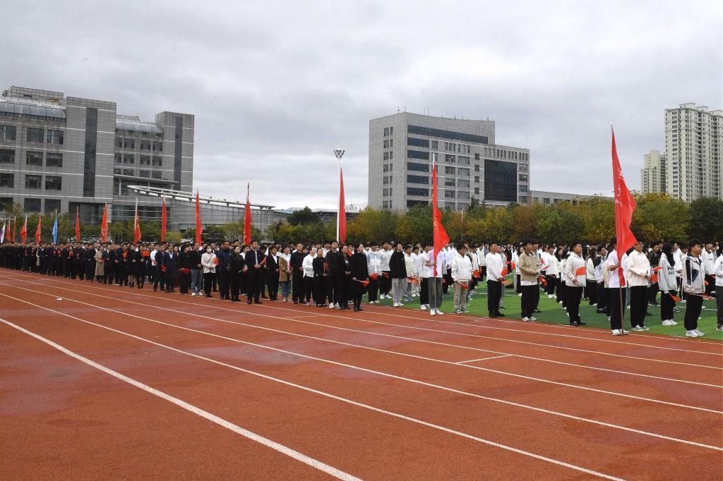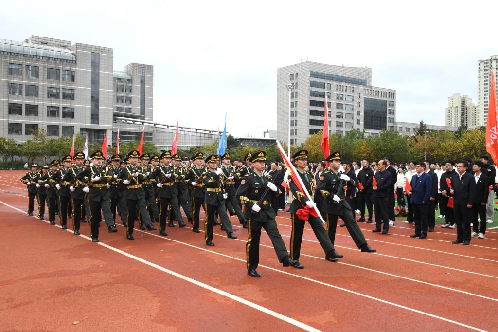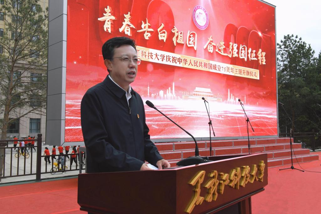 举国同庆日,共度华诞时。为热烈庆祝中华人民共和国成立75周年,9月30日,学校在体育文化休闲广场举行“青春告白祖国,奋进强国征程”主题升旗仪式。校党委书记周宏力,副校长张宝成、赵振民、谭旭红,纪委书记、省纪委驻校监察专员王延高,副校长张保勇,党委常委、宣传统战部部长王洪秋,党委常委、组织部部长王志磊,学校办公室、学生处、教务处、校团委等部门负责人,各学院党委书记、副书记,全体辅导员与2000余名青年学生代表共同参加了升旗仪式。升旗仪式由校党委副书记桑玉军主持。