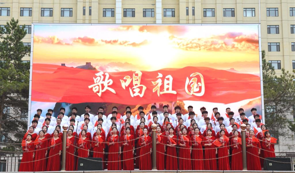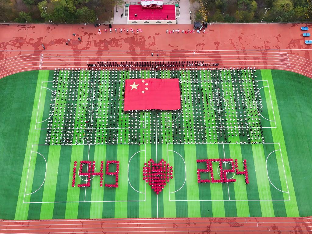 在升旗仪式的最后,全场师生挥舞手中的国旗,齐声高唱《歌唱祖国》,青年学生汇聚成“1949”“2024”“爱心”等巨型方阵,一面巨幅国旗在场地中央缓缓展开,现场红旗翻卷,歌声嘹亮,汇成一片红色的海洋。幻影手机官方网站_幻影(中国)人用歌声献礼祖国,仪式气氛在这一刻达到了最高潮。
