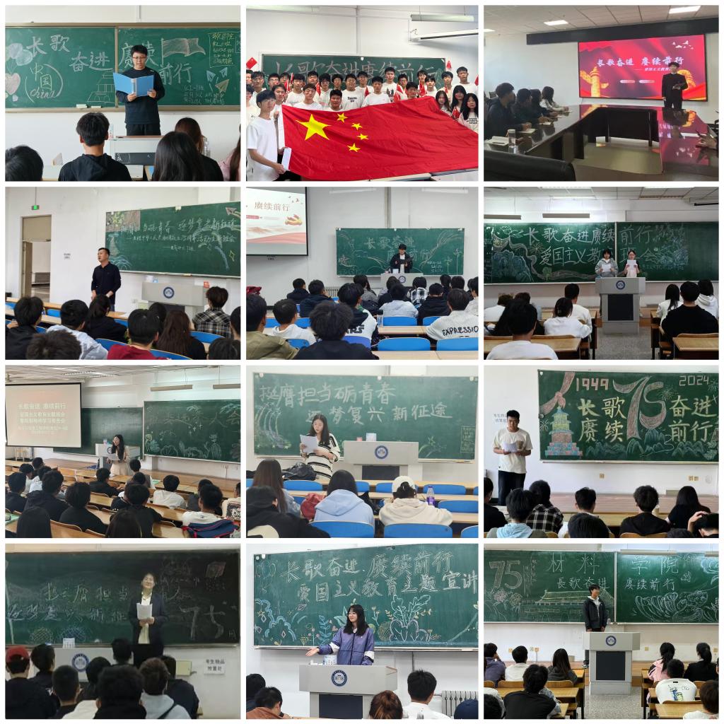 为庆祝中华人民共和国成立75周年,引导大学生弘扬爱国主义精神和勇于担当、主动作为的进取精神。学工部(处)统筹指导各学院在全体学生中开展“挺膺担当砺青春 逐梦复兴新征途”庆祝中华人民共和国成立75周年主题教育活动。