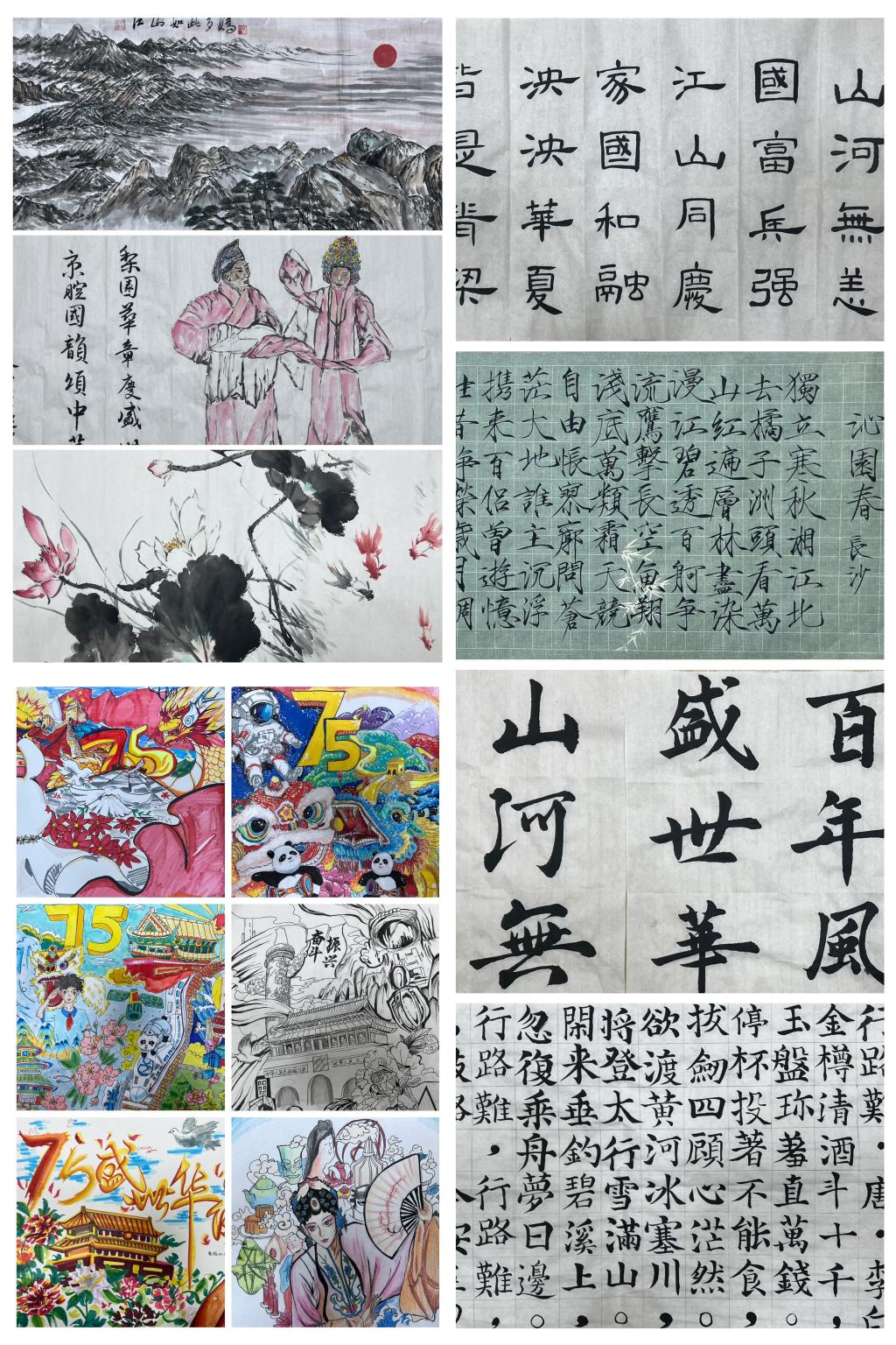 为激发大学生的爱国热情,展示幻影手机官方网站_幻影(中国)学子的风采与担当,开展中国传统文化艺术作品征集活动,传承厚植中华文脉,展示中华优秀传统文化的风骨神韵,累计收取百余件学生原创作品。矿业学院、安全学院、电气学院、电信学院、机械学院的学生作品通过笔法细腻的中国画,展现祖国的山河风貌,描绘人民的美好生活,彰显主流价值,弘扬时代精神。材料学院、管理学院、马克思学院、理学院、外国语学院的学生作品以书韵悠长的书法形式,传承和弘扬中华民族传统文化艺术,使其自觉内化为爱国情感,升华为真挚而深刻的爱国情怀。