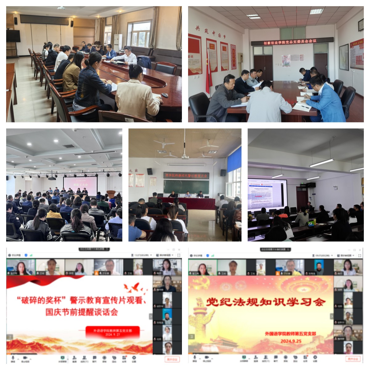 开展“强化纪律规矩意识,常态长效推进党的纪律教育”宣传警示活动。安全学院党委、工程训练中心党总支、电气学院党委、理学院党委等党组织通过召开中层干部警示教育会、党政联席扩大会议、教职工大会等形式,传达学校国庆节日期间纪律要求,引导全院教职工强化纪律规矩意识,常态长效推进党的纪律教育。环化学院党委通过召开党纪法规知识学习会、外国语学院各党支部通过观看警示教育宣传片等形式,警示党员干部要严格履行党风廉政建设责任制,树立正确的权力观和政绩观,不断强化对党风廉政建设工作的责任感和使命感。