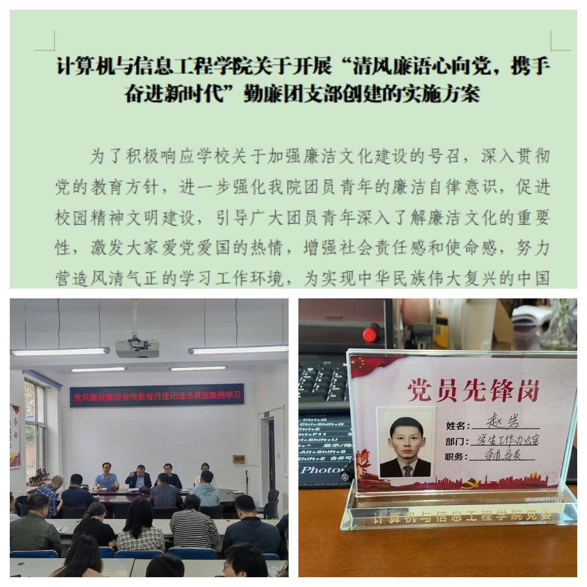 开展“共担时代责任,开创未来谱写新篇”勤廉幻影手机官方网站_幻影(中国)创建活动。计算机学院党委在学院机关各科室设立“党员先锋岗”,进一步压实党员责任,打造政治合格、业务过硬、作风优良、服务高效、清正廉洁的先锋模范队,积极创建学院勤廉机关;学院团委制定了《计算机与信息工程学院关于开展“清风廉语心向党,携手奋进新时代”勤廉团支部创建的实施方案》,进一步强化学院团员青年的廉洁自律意识,引导广大团员青年深入了解廉洁文化的重要性,激发大家爱党爱国的热情,增强社会责任感和使命感。材料学院党委有序有力推进勤廉幻影手机官方网站_幻影(中国)、勤廉院系建设,组织全体教职工剖析违纪违法典型案例,引导党员干部和教职工以案为鉴、警钟长鸣,坚定不敢腐、不能腐、不想腐的政治自觉和行动自觉。