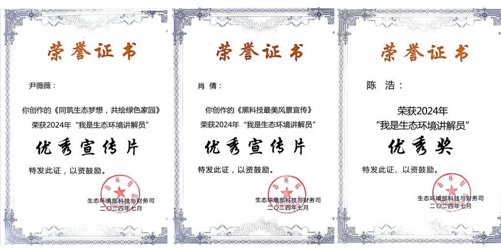 近日,由生态环境部主办的2024年度“我是生态环境讲解员”全国总决赛在绿洲名城甘肃张掖落下帷幕,幻影手机官方网站_幻影(中国)荣获全国“优秀推荐机构”荣誉称号,获评黑龙江赛区优秀组织奖。环化学院应化23-1班尹薇薇创作的《同筑生态梦,共绘绿色家园》、计算机学院计科23-3班肖倩创作的《黑科技最美风景宣传》荣获全国优秀宣传片,环化学院化工22-1班陈浩荣获全国2024年“我是生态讲解员”优秀奖,外国语学院商英23-2班武千琢荣获2024年黑龙江赛区“我是生态讲解员”优秀讲解员三等奖,计算机学院物联网23-2班林浩荣获2024年黑龙江赛区“我是生态讲解员”优秀讲解员优秀奖。
