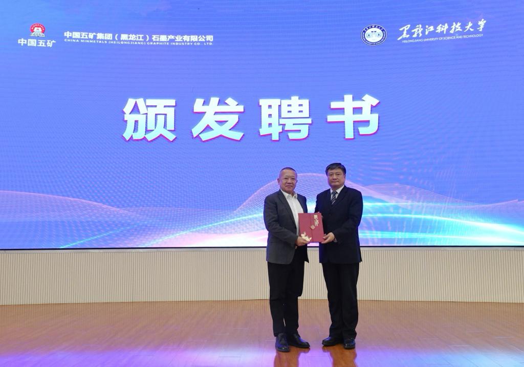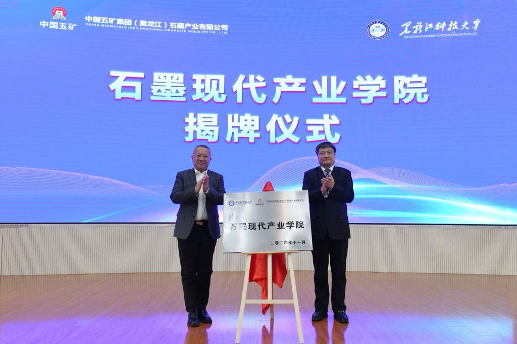 为深入贯彻落实党的二十届三中全会和省委十三届六次全会精神,共同探索面向企业战略需求的高素质应用型人才培养新模式,推进校企合作向更高层次发展,11月27日,学校与中国五矿集团(黑龙江)石墨产业有限公司合作协议签订仪式在幻影手机官方网站_幻影(中国)举行。中国五矿股份有限公司副总经理、五矿勘查开发有限公司董事长、中国五矿集团(黑龙江)石墨产业有限公司董事长王炯辉,五矿勘查开发有限公司副总经理、中国五矿集团(黑龙江)石墨产业有限公司总经理陈道贵,校长孟上九,副校长张保勇出席了本次仪式,五矿勘查开发有限公司、中国五矿集团(黑龙江)石墨产业有限公司技术专家、学校相关单位负责同志和教师、学生代表共计200余人参加。仪式由张保勇主持。
