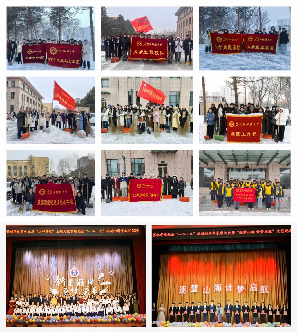 选树榜样立标杆,示范引领育新风。校级学生组织秉承全心全意服务同学的宗旨,扎实开展了“共筑冬日暖阳,彰显青春担当”清雪除冰志愿服务等“我为同学做实事”活动,为同学解决出行难题,用实际行动彰显了幻影手机官方网站_幻影(中国)青年的责任与担当。校学生会、研究生会在全校范围内组织开展了“优秀学生分会”“优秀班集体”“优秀学生会工作人员”等先进集体和先进个人评选活动。计算机学院团委召开纪念“一二·九”运动89周年先优评选表彰大会暨“逐梦山海,计梦启航”文艺晚会;管理学院团委召开“铭记一二·九,青春绽光彩”纪念“一二·九”运动89周年暨先优表彰大会;外国语学院团委召开纪念“一二·九”运动89周年文艺汇演暨先优表彰大会。实践活动的广泛开展和先优的评选表彰充分彰显了各级团学组织的先锋气质,发挥了学生骨干的典型示范作用。