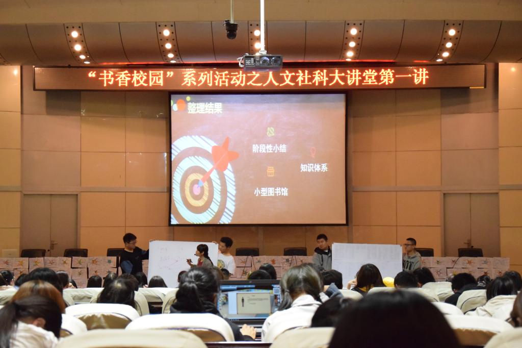 本次大讲堂的主讲嘉宾是来自人文社会科学学院的梁爽老师,梁老师是英国博赞快速阅读管理师、思维导图全球认证讲师,多年来她将自身所学与大学讲台紧密结合,旨在培养学识、能力、素质兼备的大学生。本次活动举办的当天恰逢世界读书日,梁老师以《虚心若愚 求知若饥——一百本阅读分享》为题,从“我们为什么要阅读”切入讲座,详细介绍了自己在50天里阅读完毕100本书的全部经历并展示了百书阅读笔记,讲座包含“为什么”、“做了什么”、“怎么做到的”三个部分,环环相扣,有理论、有方法、有实践,学生在现场深切感受到阅读的魅力。在讲座结束之前,由梁爽老师倡导的“大学生百书公益营”正式启动,本次活动致力于带领学生在大学期间阅读100本书,期待通过这一公益项目的启动改变大学生的校园生活以及未来人生轨迹。