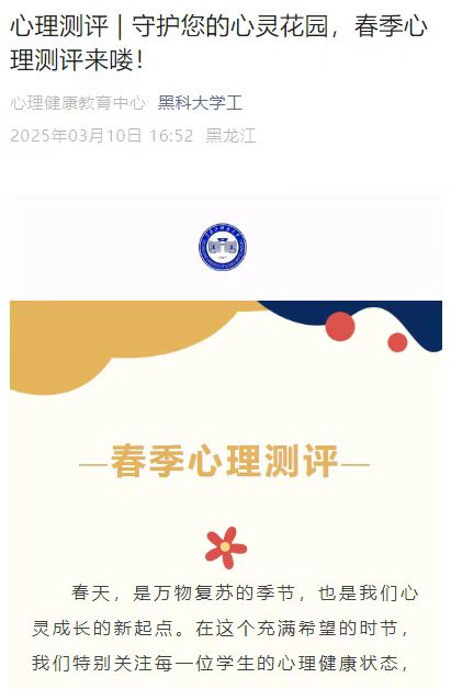 学校充分运用网络家访、重点对象排查及复学评估等手段,精准掌握学生心理健康状况,依托线上家访搭建家校桥梁,深挖学生居家心理动态,开展排查重点对象,实现早发现早干预,对复学学生开展严谨评估,全方位为学生心理健康保驾护航。