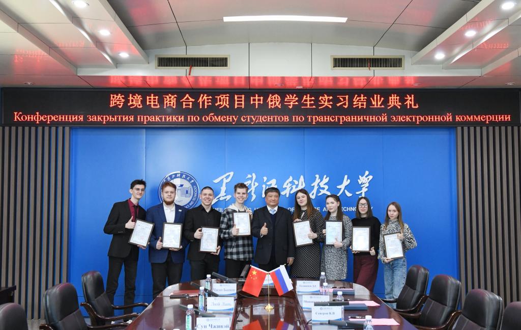 最后,双方校长分别向参加本次跨境电商项目的留学生颁发了结业证书并合影留念。这标志着两校首届中俄跨境电商人才联合培养项目的圆满结束,也预示着中俄跨境电商合作的新征程即将开启。