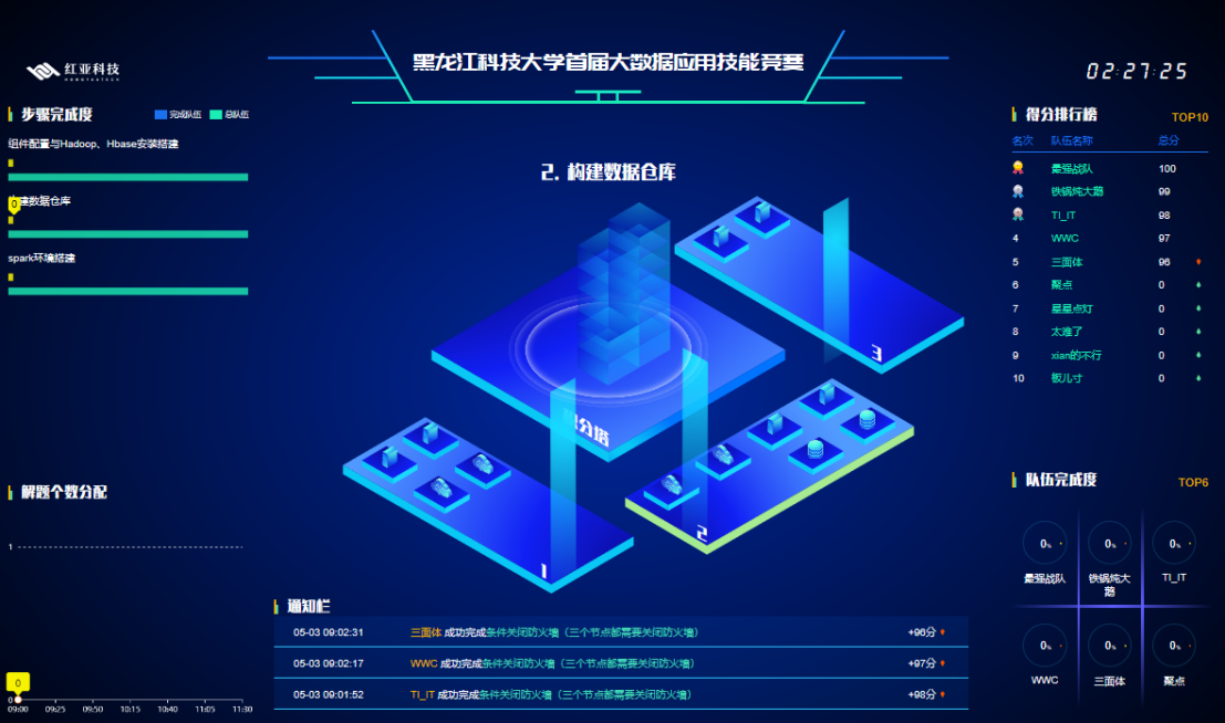 红亚华宇公司领导,校教务处领导,学生处领导,研究生学院领导,计算机学院领导与各参赛队伍指导教师共同在线观看了比赛。