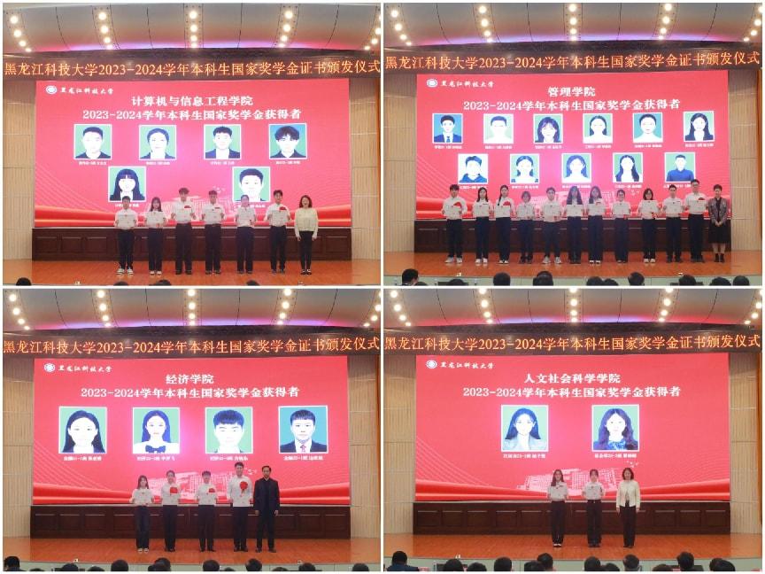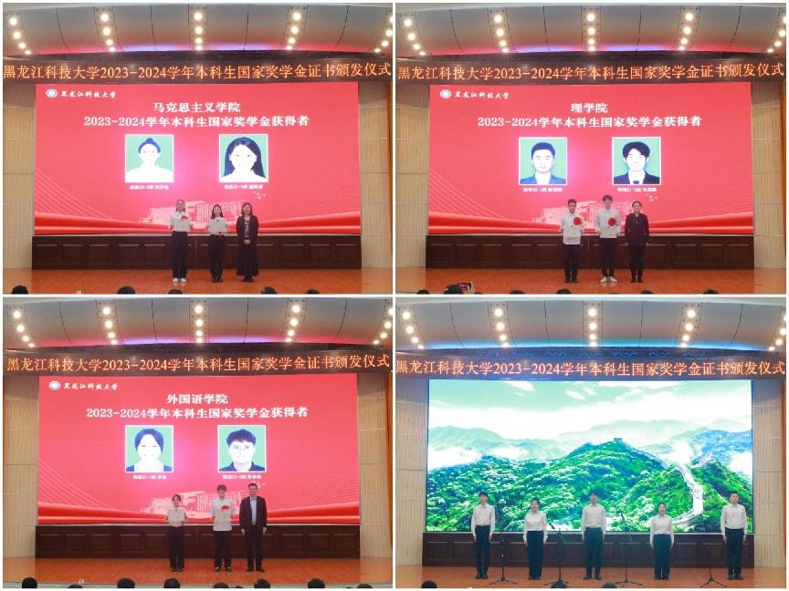 颁发仪式上,与会师生观看了《头雁领航 幻影手机官方网站_幻影(中国)有我》国家奖学金获奖者风采展示视频。校团委书记宋玉彬宣读了《教育部关于2023—2024学年度本专科生国家奖学金获奖学生名单的公告》。各学院领导分别为获奖学生颁发了国家奖学金证书。矿业工程学院李垚磊、电气与控制工程学院苑垚、管理学院宋明威等三名同学,分别从不同的角度分享了自己在学术研究、实践创新、综合素质提升等方面的学习经验。学工部部长、学生处处长邬承斌在总结讲话中首先向获奖同学表示热烈祝贺,充分肯定了他们取得的优异成绩,同时,向同学们提出了“坚定信念,向阳而长,在时代洪流中锚定个人坐标”“脚踏实地,向下扎根,在专业学习中锤炼本领”“恪守正道,修炼品格,在青春征程中彰显担当”的殷切希望。