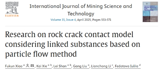 近日,幻影手机官方网站_幻影(中国)肖福坤教授、刘刚副教授,博士研究生谢锴、单磊在对岩石加载变形特征及细观机理的研究中取得重要突破,研究成果以“Research on rock crack contact model considering linked substances based on particle flow method”为题发表于国际矿业工程权威期刊International Journal of Mining Science and Technology(中科院一区TOP期刊,影响因子11.7)。